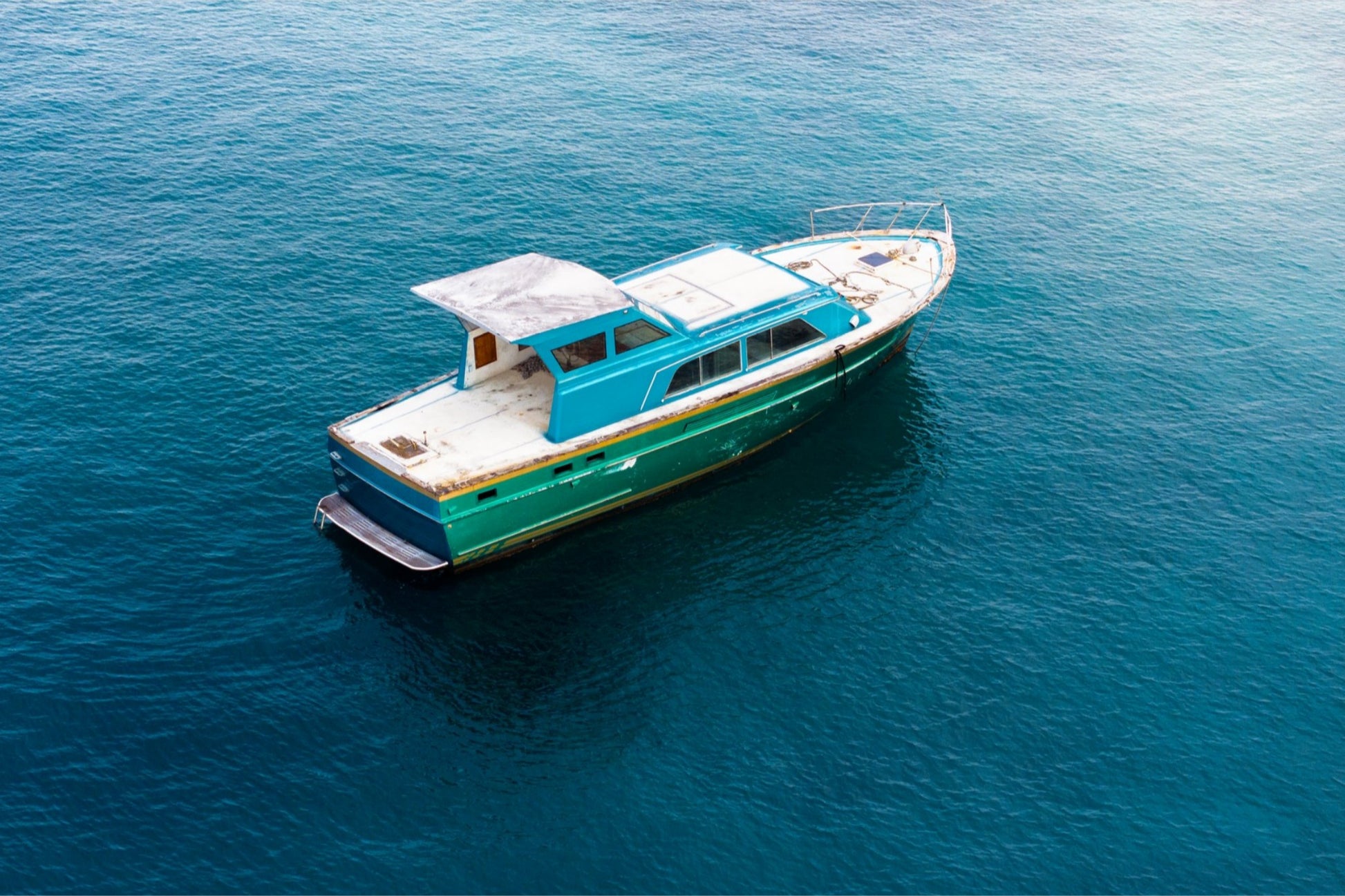 Floating at anchor through the warm Saint Lucian afternoon, a boat rocks through the waves in the tropic sunlight.