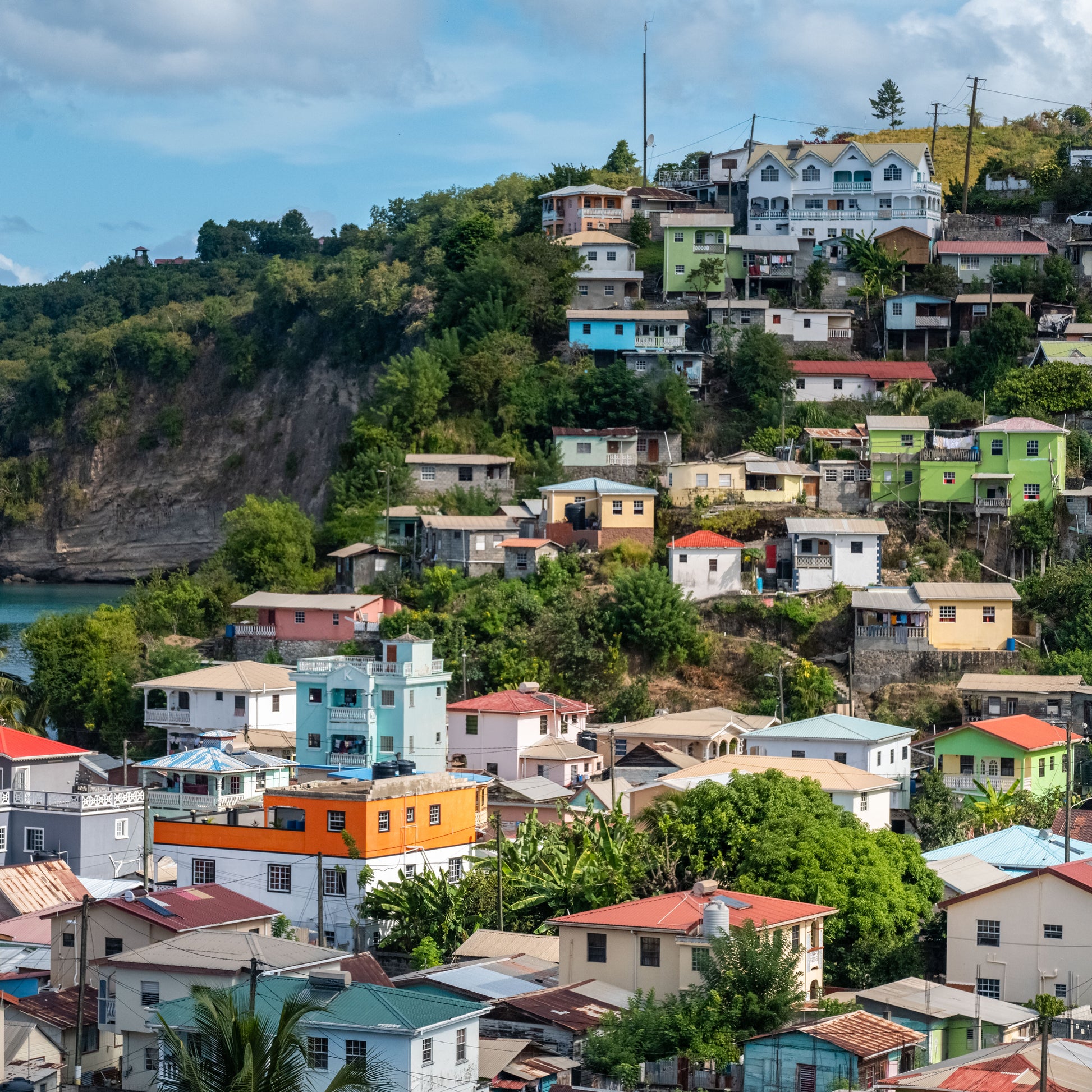 Traveling along the coast from Gros Islet to the Pitons, we stopped in a small town nestled within an island inlet. The waves crashed soundlessly as the colors made most of the commotion.