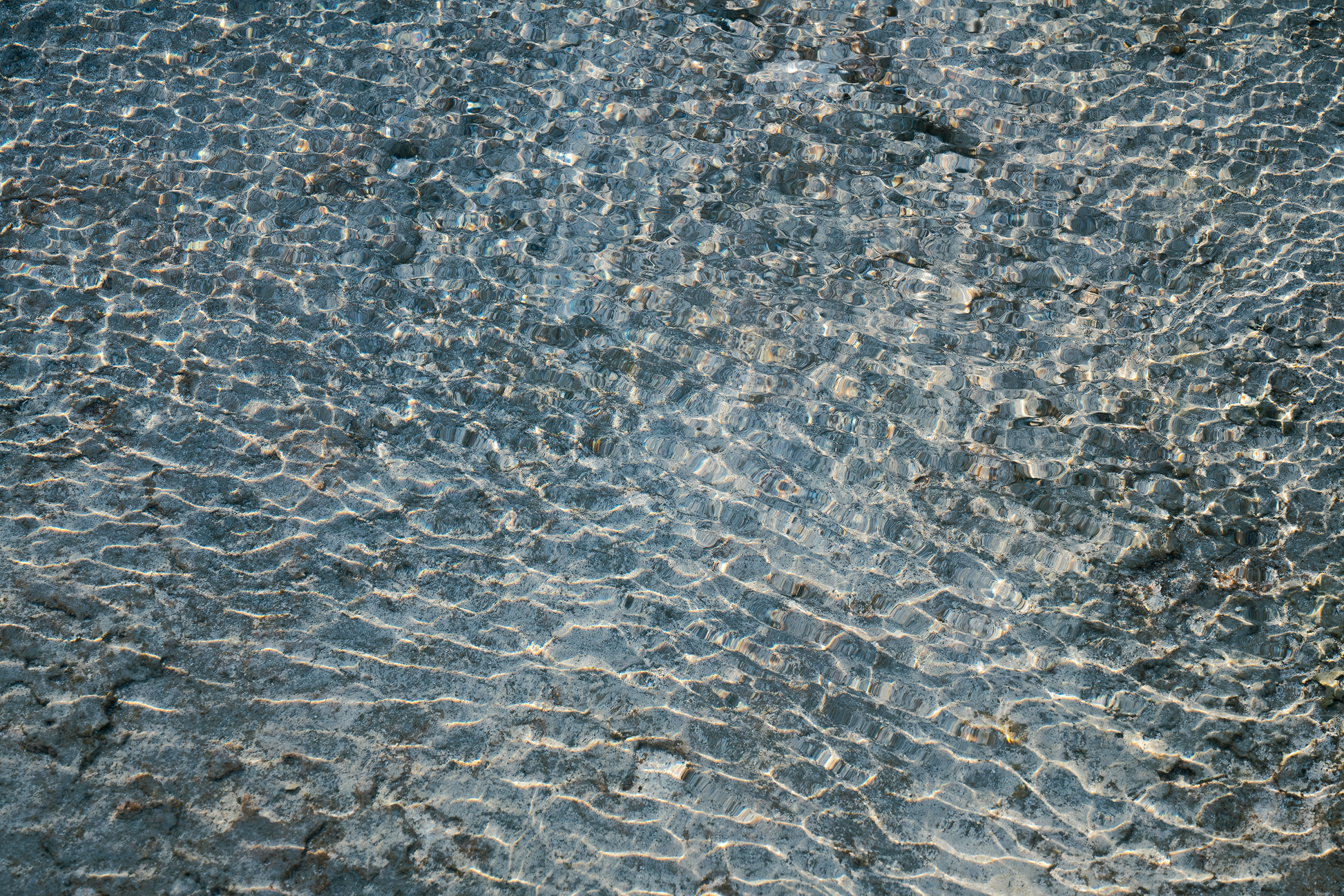 Water rolls across itself in a tidal pool nestled within a rock escarpment on an irregular coastline of the Yucatán. Protected from the turbulent waves and tidal forces, the surface of the pool is singularly disturbed by a gentle wind that ripples stirs the water into movement.