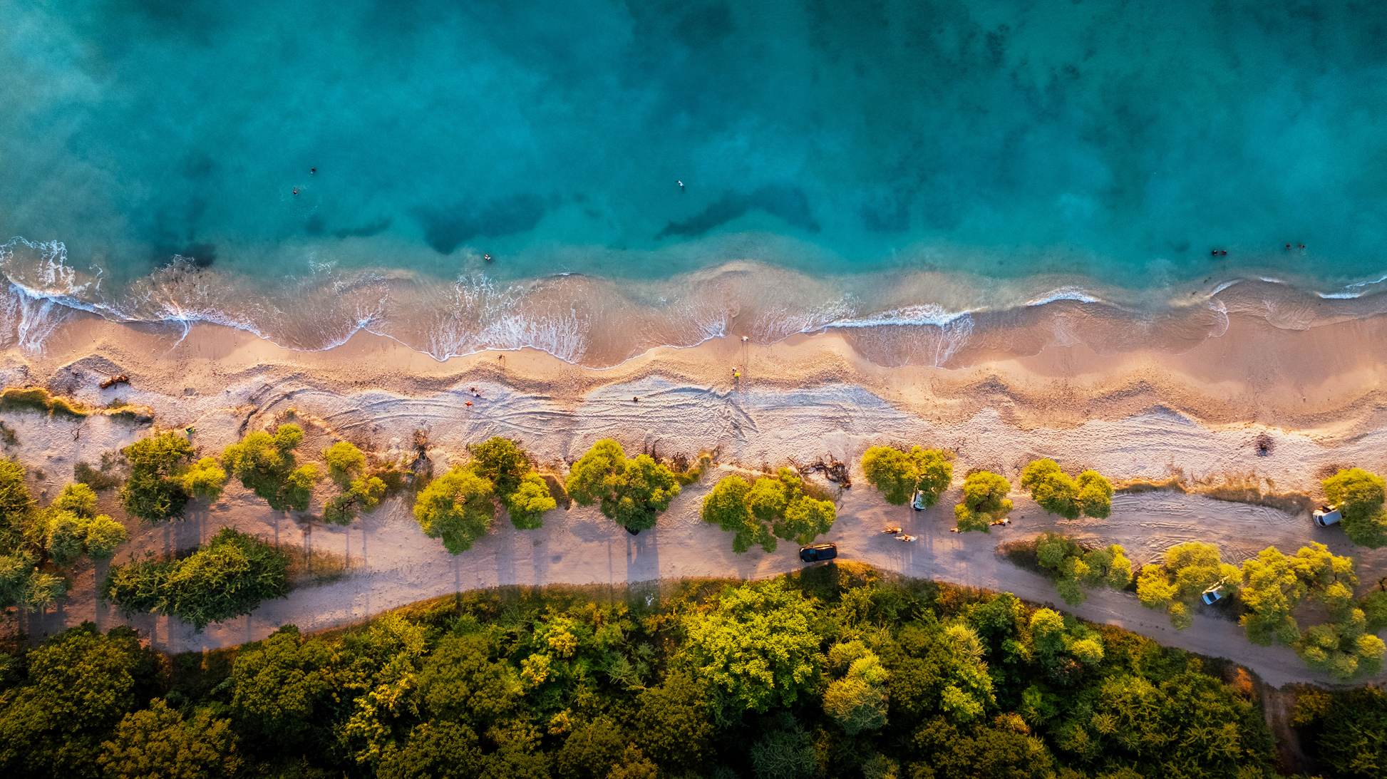 The spring sunlight in the Caribbean bring the blues out in the water and the greens pop in the tree line. During Golden Hour, the sand glows with the footprints of visitors from the day.