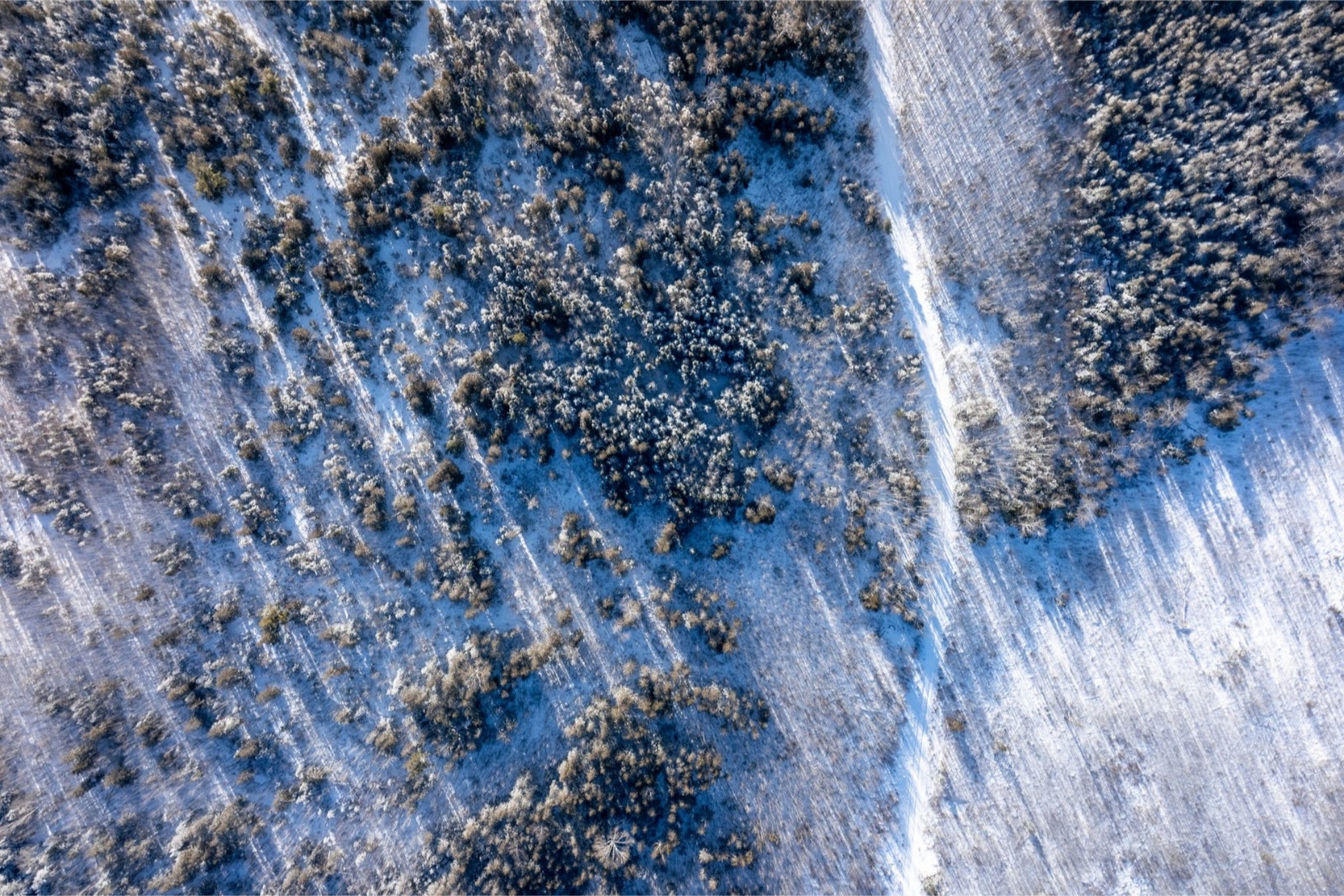 A logging road the cuts through the untouched winter landscape of Sax-Zim Bog. Used by snowmobilers, hunters, and foresters during the winter months, it's more likely to see a moose or wolf using these roads as easy routes of travel than to see another person out in the cold.